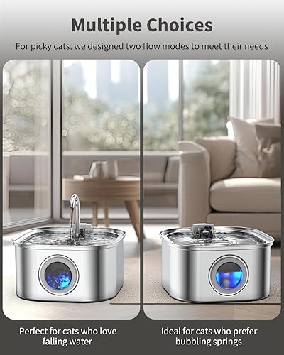 [Large Capacity & Low Maintenance]:This 74oz/2.2L stainless steel cat water fountain provides a continuous water supply, perfect for multi-pet households. Reduces the need for frequent refills, ideal for busy cat and dog owners.