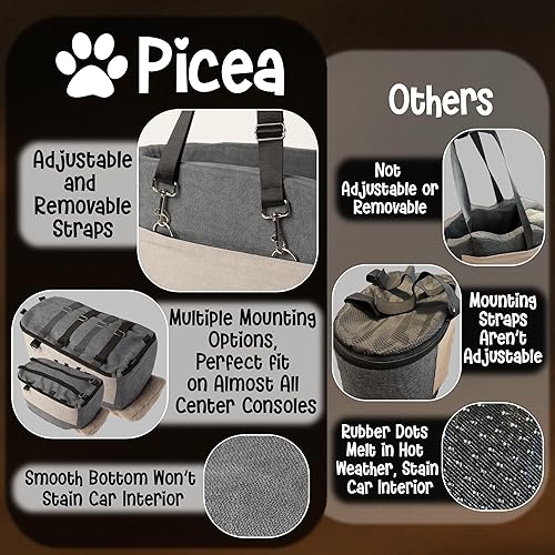 Center Console Dog Car Seat | 14 lbs MAX | Safety Straps & Leash | Comfortable Foam and Plush Pillows | Adjustable Mount Design | Large Storage Pockets | Perfect for Small Pets & Cats (Grey)(Grey,Small)