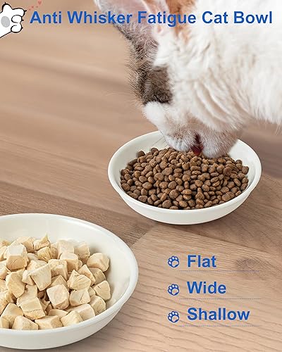 WHISKER FRIENDLY DESIGN: The wide and shallow shape of our cat dishes reduces whisker fatigue, providing a comfortable and stress-free dining experience for your furry friend
