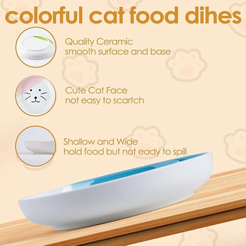 Safe and Healthy: Made from high-quality ceramic, these shallow cat bowls are scratch-resistant, dishwasher safe, and easy to clean. They do not retain food odors, ensuring that no harmful substances affect your pet's health.