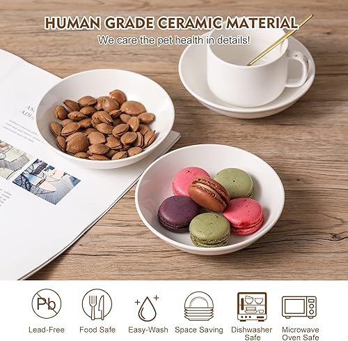 Safe & Healthy Material - The cat bowls are made of premium food graded ceramic that fired at high temperatures, sturdy and durable, cadmium and lead free, non-toxic and harmless.