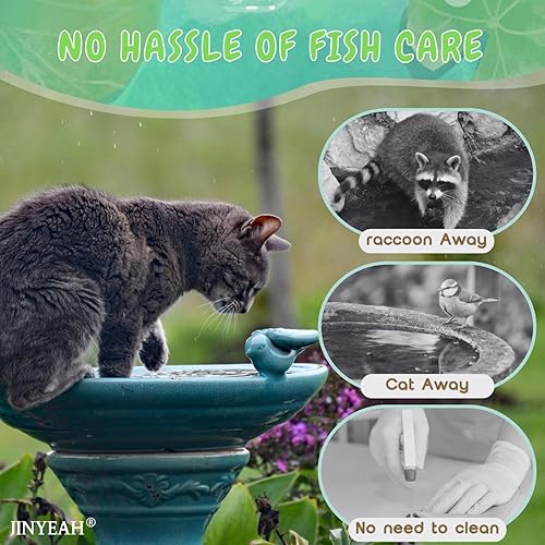 No Hassle of Fish Care: Koi fish decor no need to worry about raccoons or cats snatching the Ceramic koi fish from your pond fountain or birdbath (because they're not tasty), and no need to feed them or clean the water