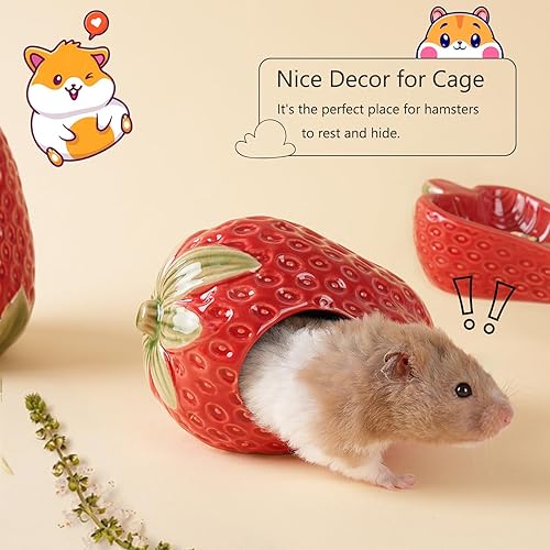 Strawberry Themed Decor: The Deapeey hamster ceramic nest looks like a strawberry, bringing interesting viewing effects to the hamster cage. The cute hamster strawberry pot shelter decorates a sweet living and entertainment place for your hamster