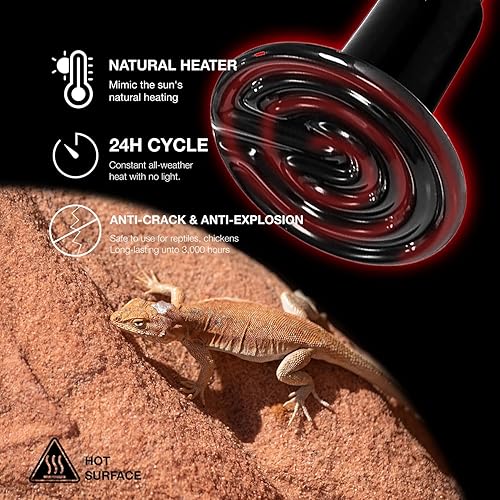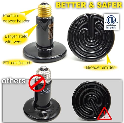 LONG-LASTING: Up to 12,000 hours of lifespan, high-frequency ceramic is more heat-resistant and safer, ETL certified, guarantees the growth of reptiles.