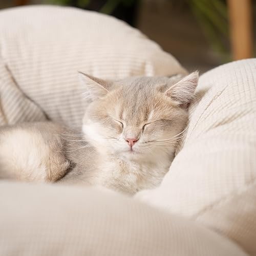 Breathable Comfort: The petal-shaped cushion features shed-resistant fabric—soft and highly breathable—filled with high-density resilient foam that retains its shape even after machine washing, offering cats or small dogs a cozy resting nook. (Note: Allow cushion to fully expand after first unpacking for optimal comfort.)