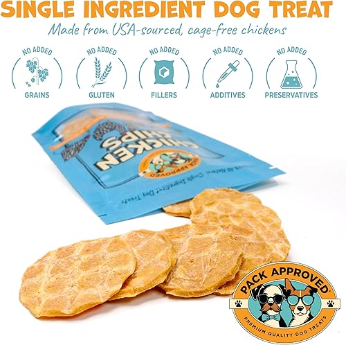 Chicken Chips Dog Treats: Each bite of our crunchy dog treats offers a fun texture that dogs love. Break them into smaller pieces for versatile use as training treats for dogs.