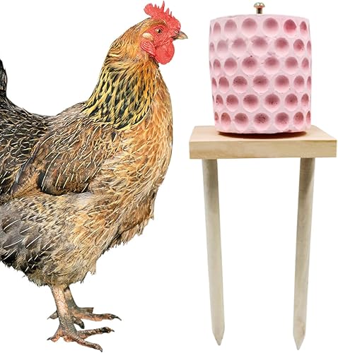 【Chicken Coop Accessories】: This beak grinding calcium stone with wooden stake is the perfect addition to your chicken coop. It helps support your birds' natural beak care and encourages healthy chewing habits, all while adding a fun and functional toy to their environment.
