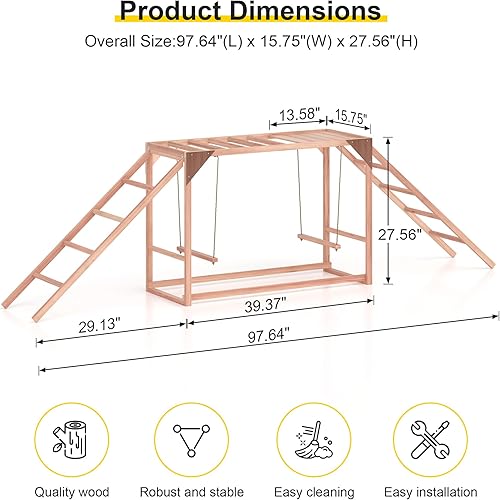 【Premium Quality Material】 Chicken perch made of natural cedar wood is naturally beautiful, chicken roosts can improve your chickens' coordination and balance, suitable for all breeds and ages of chickens, also suitable for a variety of medium and large birds.97.64"L X 15.75"W X 27.56"H