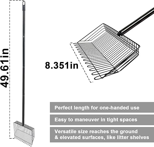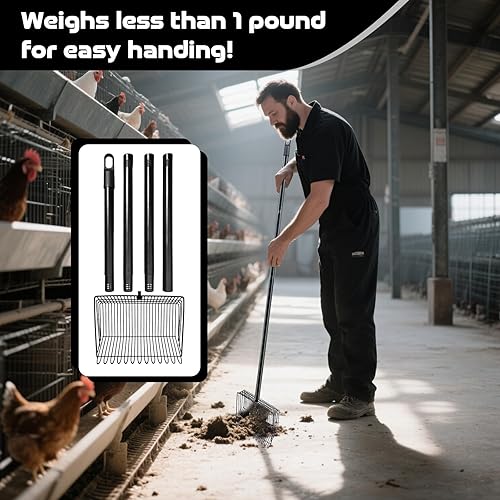 PRACTICAL FEATURES: Adjustable handle length and wide rake head design allows for maximum coverage while cleaning coops of any size
