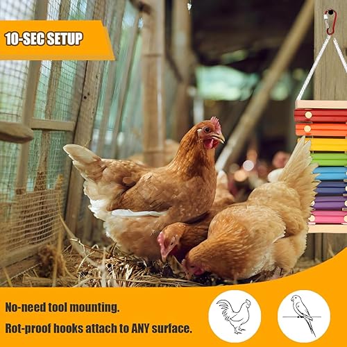 Stimulating Chicken Toys to Relieve Boredom: Bright colors and playful sounds make this chicken coop toy irresistible. Reduces stress and keeps your chickens or birds active and entertained
