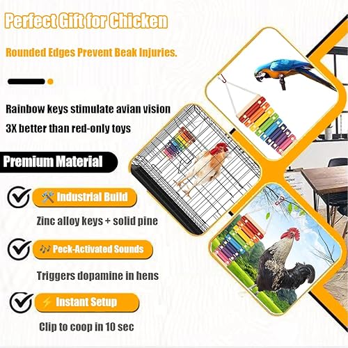 More Than Just Chicken Coop Toys: An ideal surprise for backyard chicken or birds keepers! Not just for chickens! This xylophone toy is also great for parrots, macaws, and other large birds. This chicken coop toy can brings joy to chickens or birds and makes a unique gift for chickens & birds enthusiasts.