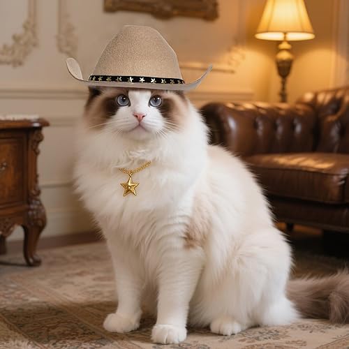 STYLISH CUTE LOOK:The pet cowboy hat with gold star pin is made of polyester, which are durable, comfortable for wearing. No matter a party with your pet or in daily life,the cute style makes pets looks cool, stand out from the crowd.