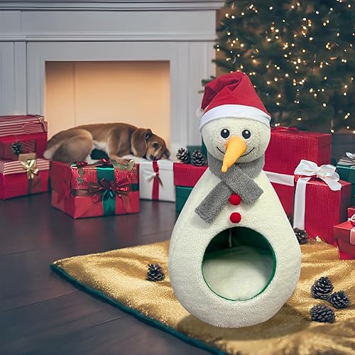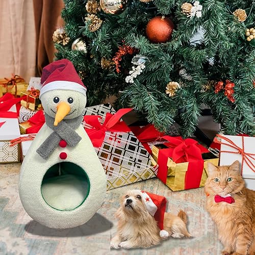 Funny Shape Design: Snow-man shaped pet kennel is a good Christmas gift.Give your furry friends some spaces in secret; head, scarf, hat can be disassembled, feel the joy of assembly.