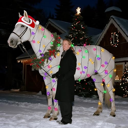 Size: our Santa horse hat measures approximately 13.78 x 16.93 inches/ 35 x 43 cm, a one size fits all design that fits most horses, It's easy to secure to your horse, instantly embracing the Christmas spirit; The accompanying horse LED light string is approximately 65.62 ft/ 20 M long, more than enough to adorn your horse
