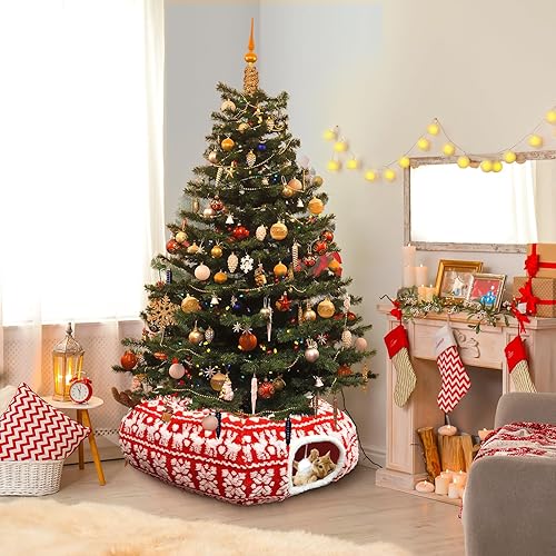 Multi-Functional Play & Rest Space: Christmas tree cat tunnel spacious & versatile—great for cats, rabbits, guinea pigs, and small pets! Use it as a play tunnel, hideout, or comfy bed. The attached plush mat provides a soft spot for naps, while the tunnel encourages jumping and exploration