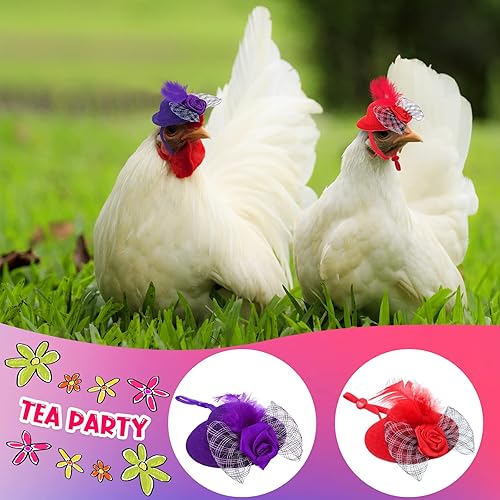 You Will Get: there are 2 pieces of chicken leash and harness sets in blue and rose red, 6 pieces of chicken hats in different colors, namely black, blue, purple, pink, rose red, and red, sufficient quantities and styles can meet your chicken's dressing needs