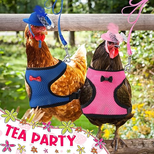 Soft Material: the hen harness set is made of mesh fabric, which is breathable and comfortable, soft enough that will not scratch your pet's skin and feather; The chicken hat headgear is made of brushed fabric, which is soft and lightweight, skin friendly, and the hat is decorated with flower and feather, adding much charm to your chicken