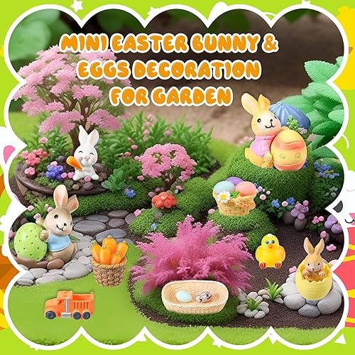 Easter Theme: bring the joy of Easter into your fish tank with cute decorations; The bunnies are designed in different poses to bring vitality to the fish tank; The bunnies, eggs, baskets, carrots, and trucks together create a charming scene