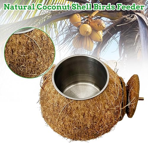 2-in-1 Design: Apatal coconut pet feeder bowl is both a feeder and a birdhouse. Easily remove the stainless steel feeder cup and fill it with coconut fibre to transform it into a cozy coconut bird nest, giving your bird a sense of being in nature