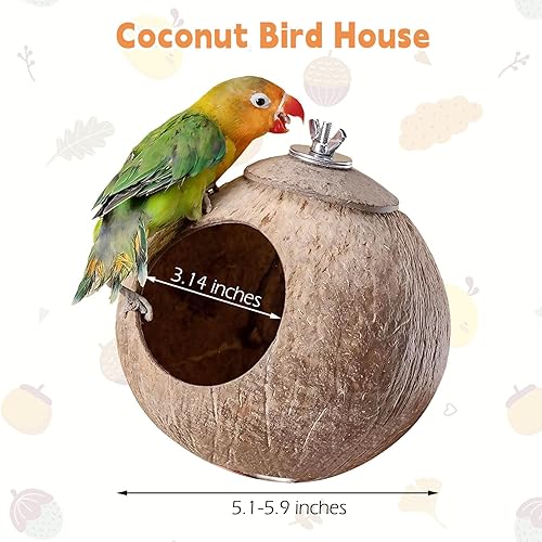 Coconut Shell Birdhouses: Apatal Coconut bird house for cage give birds a place to rest and hide. There are two styles of bird cage nest to choose from: smooth surface (with a sanded surface), rough surface (with an unsanded surface)