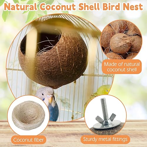 Easy Installation: Natural coconut shell bird nest can be easily installed by simply securing and twisting the tight nuts to attach them to the cage, no additional tools are needed and it can be done in minutes
