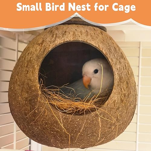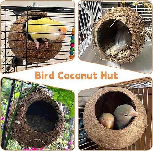 Natural Coconut Shell: Apatal parakeet nest for cage is made of natural coconut shell, the bird cage coconut nest not only provides a safe nesting place for birds, but also allows them to have foot and beak exercise