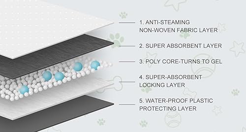 Leak-Proof Protection Guarantee: Each pee pad features Polyethylene backing with a border to protect the floor by blocking leaks, The polymer layer absorbs liquid and turns into a gel for easy clean-up, Keep Your Home Clean and without Odor.