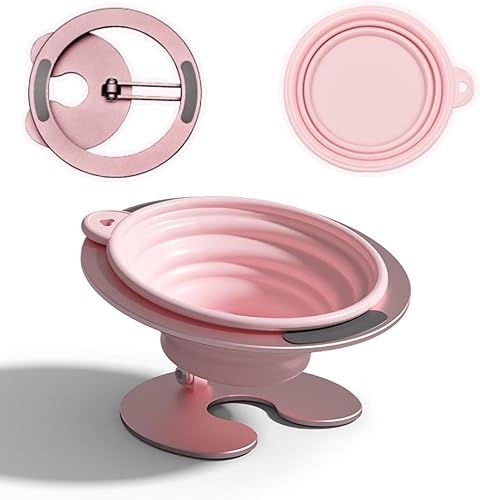 Collapsible & Portable Design: This collapsible dog & cat food dish is designed for saving space. The aluminum alloy stand and silicone bowl are both foldable and can be attached to belt loop, backpack,dog leash,dog collars,dog carrier,bags,luggage and more. Portable dog travel water bowls are great for traveling or camping with your small and medium dogs and cats while ensuring pets can eat anywhere.