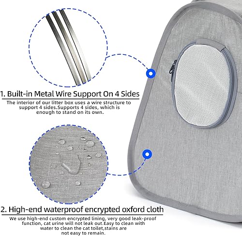 Waterproof Easy to Clean: The cat litter box is made of high-density 600D Oxford cloth and coated with PVC coating to ensure no leakage. The smooth inner surface makes it very easy to clean