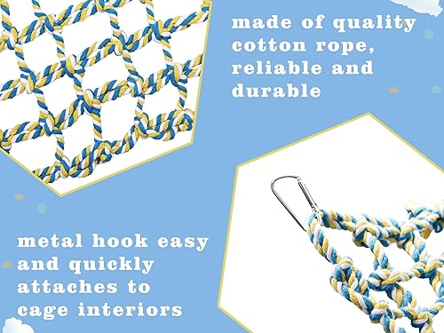 Bird Climbing Rope Net: The pet climbing rope net is very versatile, you can hang it horizontally in a cage and use it as a hammock platform for birds and mice to stand and play. You can hang it vertically in a cage and use it as a climbing toy for birds, hamsters, guinea pigs, and rats. You can also link two climbing nets together to create a larger small animal cotton rope net toy.