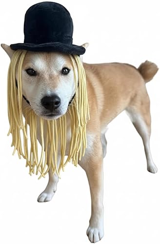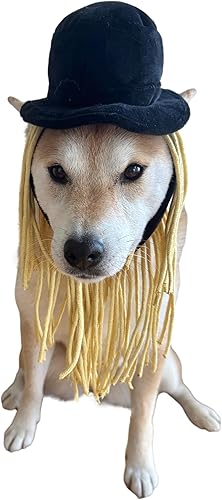 DESIGN: This playful dog costume features a cute black flat top hat with long, thick tan yarn hair that flows all around your pup. It stays in place with a comfy Velcro strap under the neck. Perfect for Halloween, cosplay, family photos, pet shows, parties, or themed events!