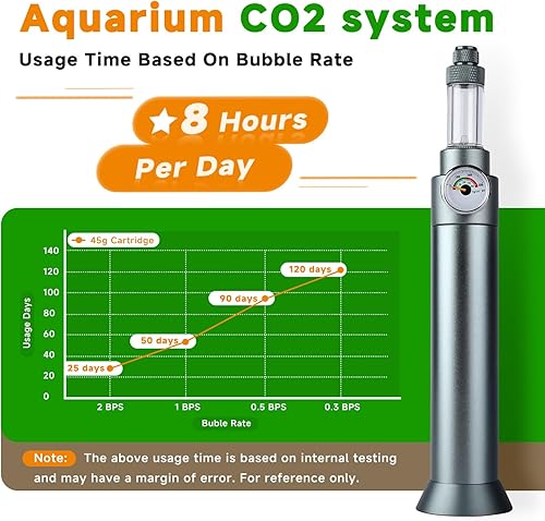 Long-Lasting & Hassle-Free CO2 System:The disposable 45g cartridge eliminates frequent refills for effortless setup and minimal maintenance. Our internal tests confirm 50-day continuous operation at 1 BPS (8 hours daily)
