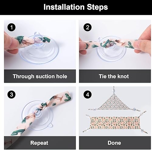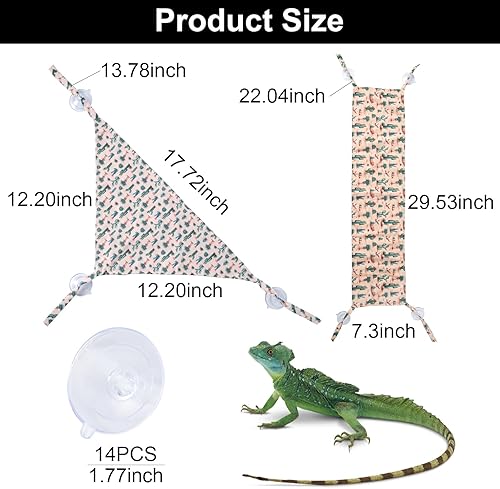 Strong and Reliable: Featuring colorful cactus pattern ropes, each triangle reptile hammock includes 3 suction cups, while each rectangle hammock includes 4, ensuring a firm hold on glass or plastic surfaces. Your reptile pet can sleep and bask securely with reptile hammocks that stay firmly in place