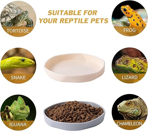 Wide Applicability: This reptile water and meal bowl is perfect for providing worms or water, suitable for a wide range of reptiles, including snakes, lizards, turtles, geckos, leopard geckos, bearded dragons, hamsters, chameleons, and corn snakes, etc
