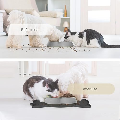 Coomazy Cat Food & Water Mat, Thicker Non-Slip Silicone Mat with Raised Edge (Pink, Medium)(Black)