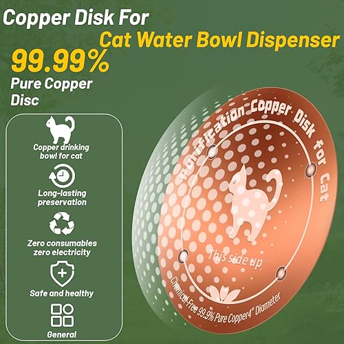 Year-Round cat water bowl Protection ,Copper Disk for cat water bowl performs flawlessly in all seasons. The self-regulating Copper Disk for cat water feeder purification automatically adjusts to summer and winter conditions, keeping water clean. Your cat get crystal-clean hydration 365 days a year, and you get back the time you used to spend scrubbing buckets or thawing fountains.