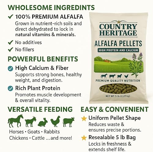 Premium Forage Nutrition: Carefully dehydrated alfalfa pellets deliver essential protein, fiber, and nutrients to support healthy growth, strong muscles, and shiny coats in all classes of livestock.