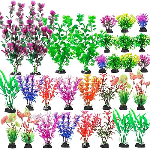 30aquarium plants, 15different styles, Various Heights 6 to 31 cm. ( 2.4 inch to 12.3 inch ), perfect for aquariums and fish tank decorations