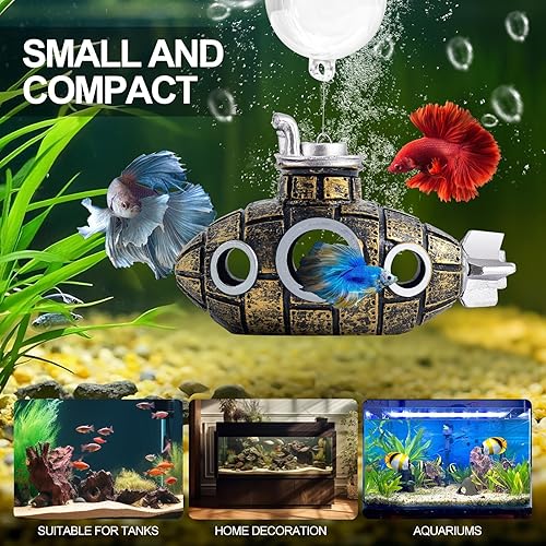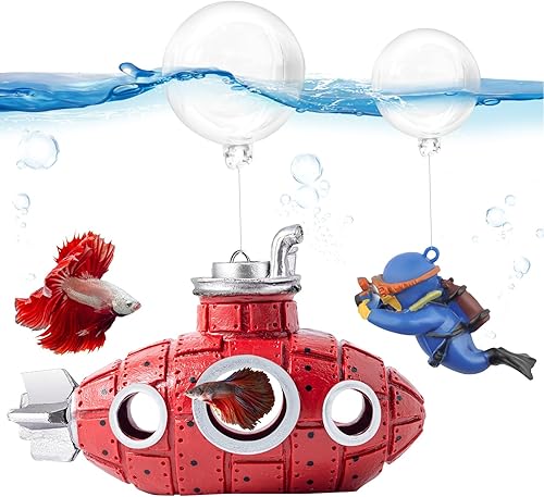 Unique aquarium decoration: This submarine not only adds creativity to your fish tank, but also provides a perfect resting place for your betta fish, goldfish, cichlids and shrimps. Meanwhile, divers taking photos keep your fish tank full of vitality