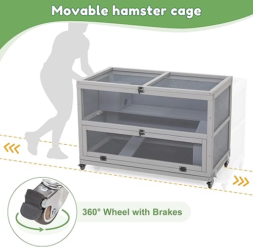 DURABLE CONSTRUCTION & SPACIOUS LAYOUT: This large hamster cage is made of sturdy natural pine wood to ensure durability. Spacious cage dimensions (L 35.4“ x W 19.7” x H 23.6") provide plenty of space for small pets to simulate the wild.
