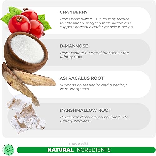 Balanced urine ph - Helps maintain a normal urine pH level, which is essential for creating an environment less conducive to the formation of crystals and discomfort.
