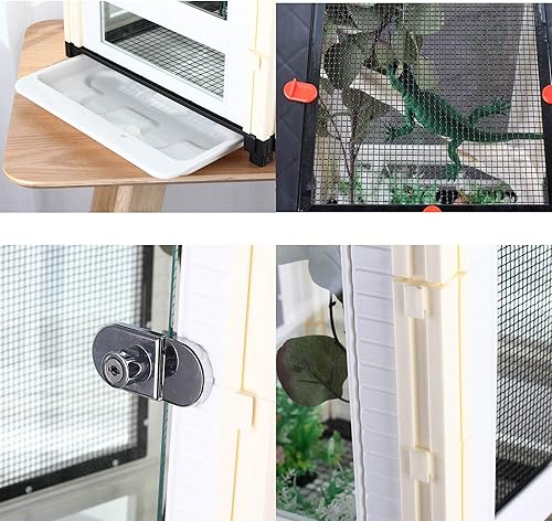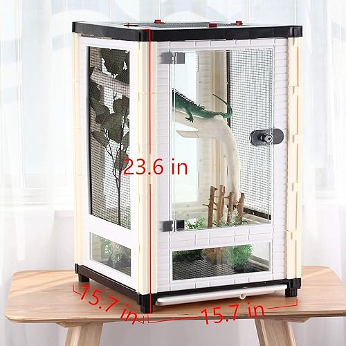Size: 15.7x15.7x23.6 inches.Iron mesh on both sides, front and rear glass, provides an extra climbing dimension and endless terrarium design opportunities