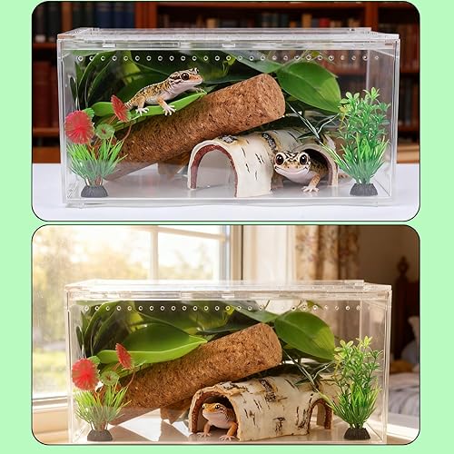 Package List:1 x Reptile Cork Stick,1 x Artificial Jungle,1 x Artificial Leaf,1 x Artificial Birch Hideout ,2 x Artificial Plants.The birch hideout provides ample activity space for reptiles, while restoring the appearance and texture of their natural habitat, allowing them to live happier and healthier lives in the enclosure.