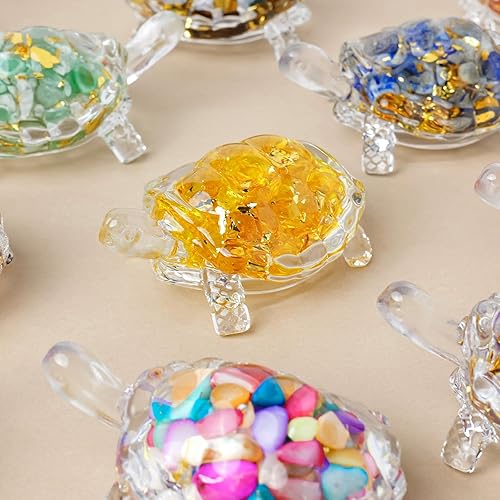You will receive a crystal glass turtle statue decoration. Its shell is made of glass, and the interior is filled with resin, natural crystal gravel, and gold foil paper.