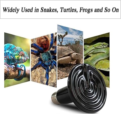 2.✔ Energy Saving & Longevity: Ni-Cr-Alloy resistance wire heating faster and more energy saving than normal type; Ceramic heat lamp is perfect for high humidity terrariums; lasts up to 2,000 hours. reptile heat lamp is approved by CE classified.