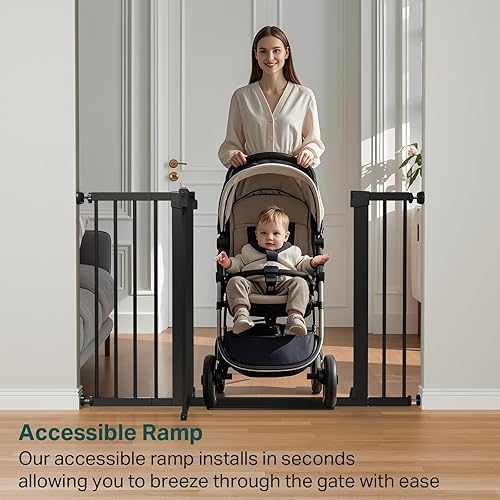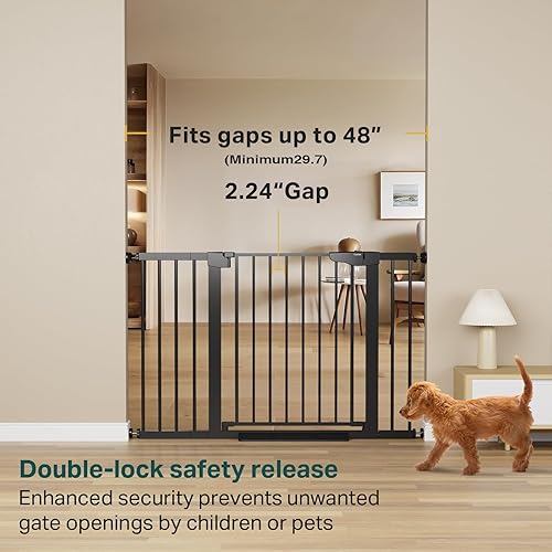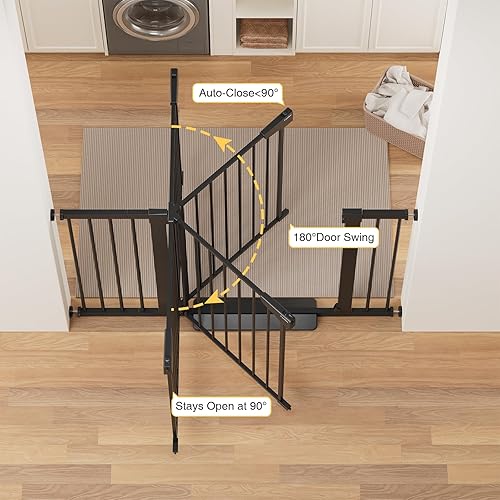 Safer, Stronger Baby Gate – Protect What Matters: Keep your baby or pet safe from staircases and off-limit areas. This metal baby gate features a dual-lock safety system, preventing toddlers from opening it. Plus, it auto-closes when open under 90°, giving parents peace of mind.