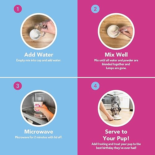 Complete birthday cake for dogs in 2 minutes - comes with cake mix, yogurt icing and sprinkles.