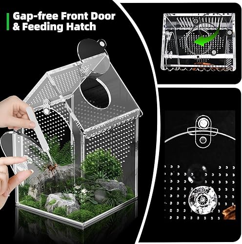 【Thickened Acrylic with Crystal Clarity】After testing, our thickened acrylic terrarium will not deform after long-term use, and has excellent load-bearing and drop-resistant characteristics. It is much more durable than most similar products.Its light transmittance exceeds 95%, allowing you to clearly observe your pet's every move.