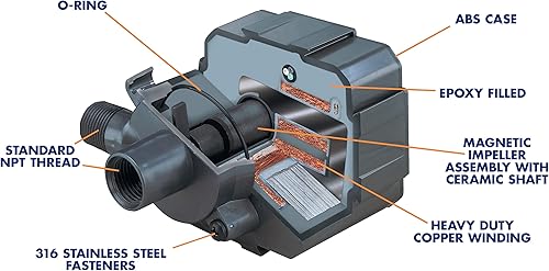 operate in-line or submerged, with quiet, efficient and reliable 24/7 performance. They feature a magnet impeller assembly