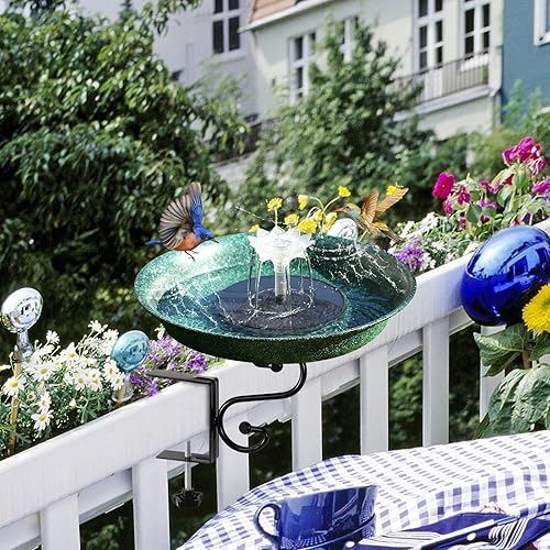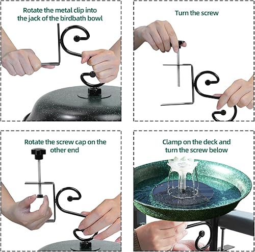 Sturdy and Durable:Solar Fountains deck mounted bird baths consist of durable metal bowls and metal clamp. Solar Fountains bird bath bowl is made of high quality material and is very strong. The metal clamp can be securely clamped to the deck and remain stable in the event of wind and rain, or other bad weather